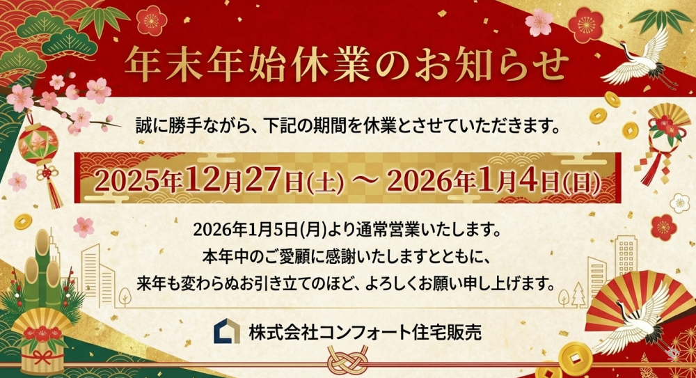 年末年始休業のお知らせ!|高槻市 茨木市の不動産(新築・中古)売買ならコンフォート住宅販売